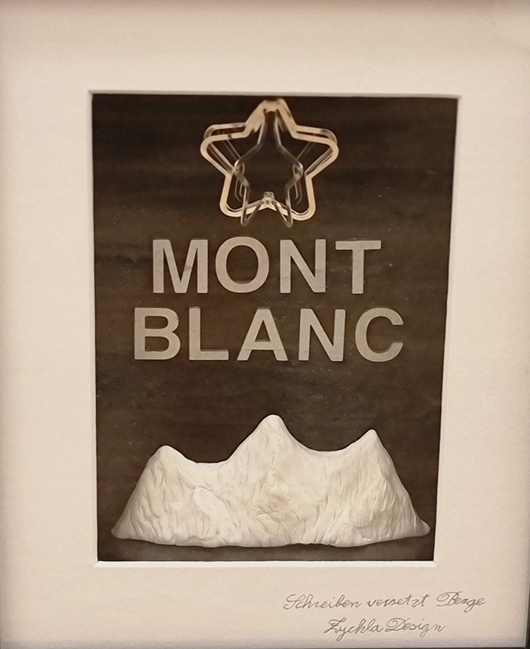 Speziell angefertigt für einen Schreibgeräte Liebhaber, der gute Qualität zu schätzen weiß. Das Symbol des Schreibgeräteherstellers MONTBLANC vereint mit dem handmodellierten Berg Mont Blanc, welcher an der Grenze zwischen Frankreich und Italien liegt.